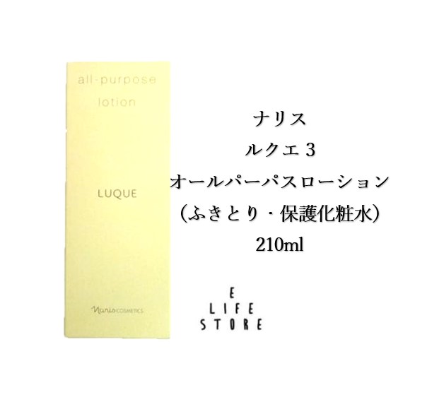 ナリス ルクエ 3 オールパーパスローション210ml(ふきとり・保護化粧水) 無香料 無鉱物オイル 無タール系色素 無エチルアルコール 無パラベン(防腐剤) 送料無料