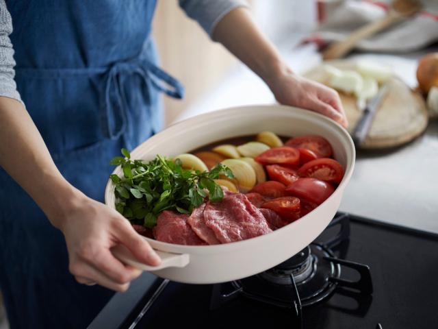 セットの深鍋は取り外してガスコンロやカセットコンロなどの直火で調理することも可能です。下準備をキッチンのコンロで済ませてから、テーブルで仕上げの加熱をするという使い方もでき、大変便利です。
