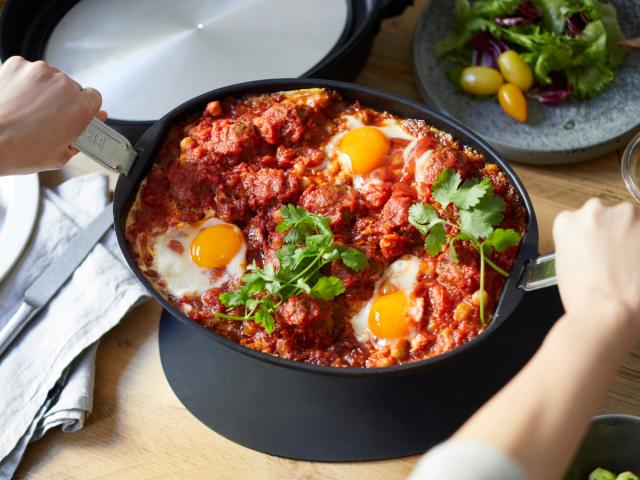 できあがった料理は付属のハンドルやシリコンマットを使えば、そのまま食卓にサーブできます。平面プレートで一品料理を作ってから食卓へ置いてから、深鍋でメインの鍋料理を楽しんだりたこ焼きをしたりといった使い方もおすすめです。