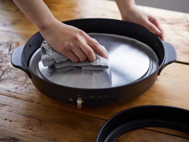 3つの調理プレートつきで、シーンに合わせて使い分けができます。付属の平面プレートとたこ焼きプレートで「焼く」調理はもちろん、付属のフタを使えば蒸し料理もできます。深鍋はお鍋や煮込み料理にお使いいただけます。