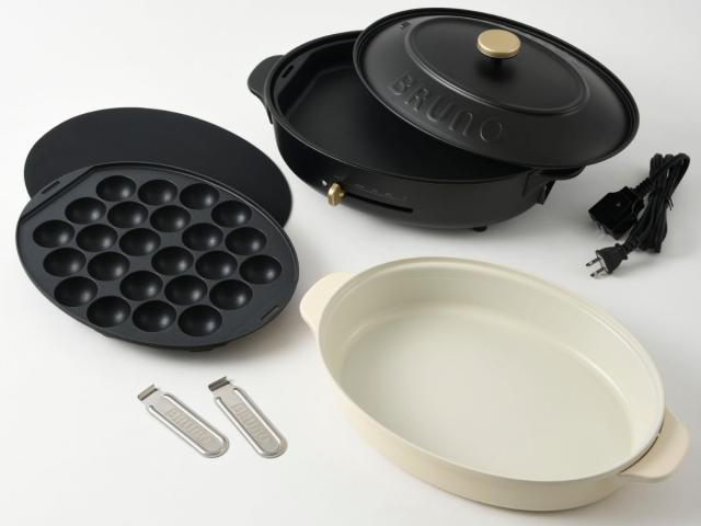 BRUNO オーバルホットプレート たこ焼きプレート付き 蓋付き crassy+ ( ブルーノ ホットプレート セット 調理プレート付き 平面プレート たこ焼きプレート 深型鍋 温度調節 キッチン家電 調理家電 電気 )