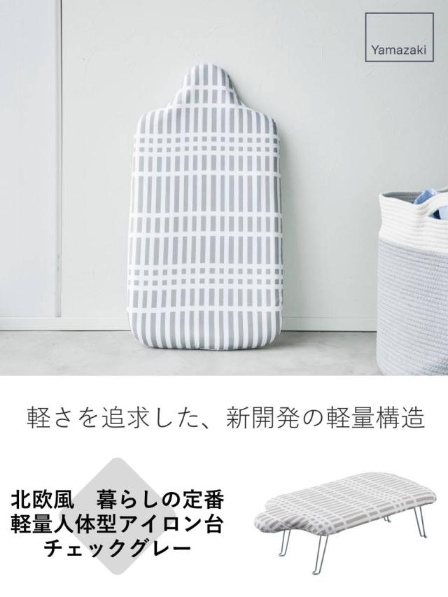 山崎実業 北欧風 暮らしの定番 軽量人体型アイロン台 チェックグレー ( アイロン台 アイロン掛け 人体型 アイロン 台 脚付き スチールメッシュ 折り畳み 折りたたみ 収納 ぴったり フィット フック付き アイロンボード )