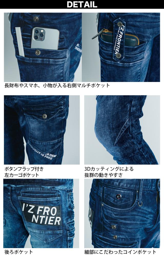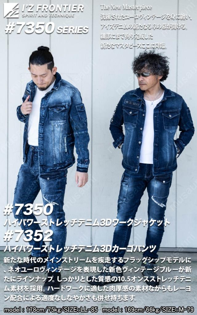 アイズフロンティア ハイパワーストレッチデニム3Dワークジャケット カーゴパンツ 上下セット 7350 7352 オールシーズン 作業服 作業着 おしゃれ I’Z FRONTIER