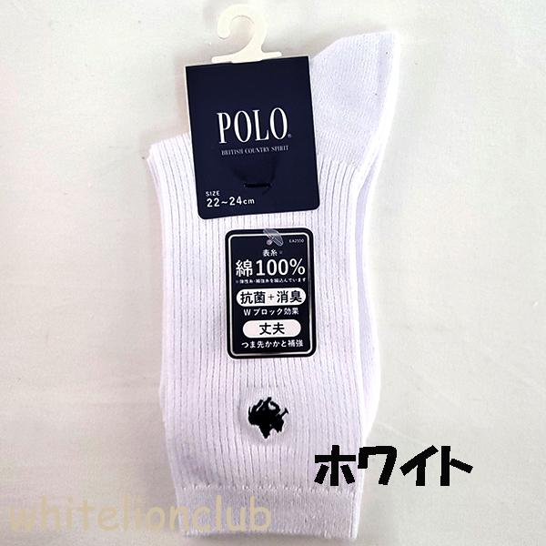 スクールソックスの定番!POLOのワンポイント刺繍ソックスです。クルー丈でずり込みにくいかかとワイド仕様。抗菌防臭加工も施してあります。両面刺繍だから左右気にせず履けちゃいます。何足あってもいいですね♪