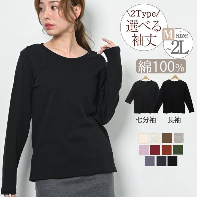 綿100% 長袖 七分袖 tシャツ レディース 綿100 インナー トップス カットソー 長袖tシャツ 春 夏 秋 冬 uネック 無地 厚手 シンプル 黒 白 アイボリー グリーン グレー ラベンダー ボルドー M L LL 大きいサイズ コットン100 7分袖 ラウンドネック ルームウェア レイヤード