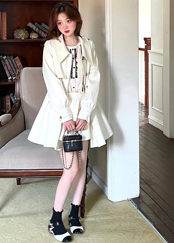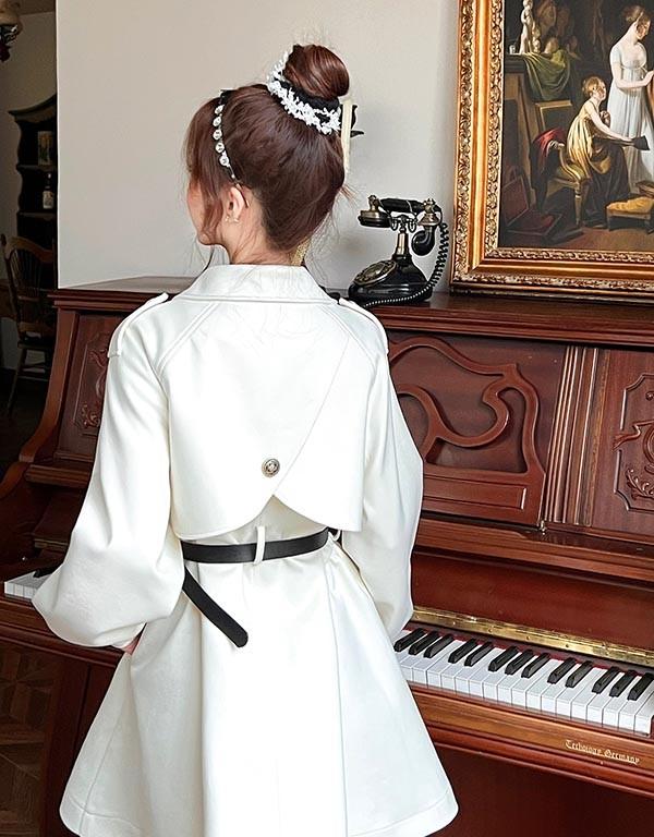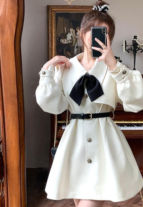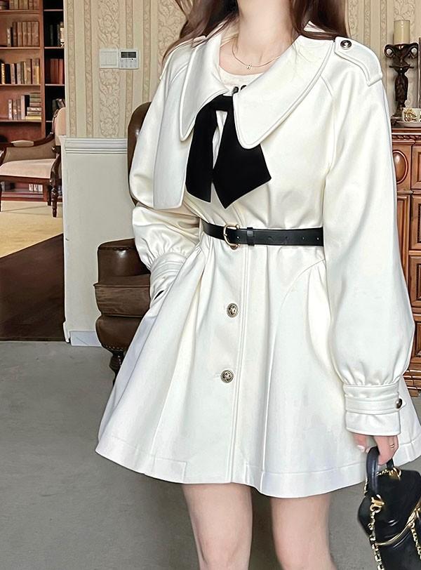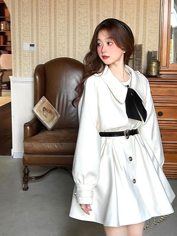 【商品名】ショート丈 冬服 ステンカラーコート ロリータ 可愛い リボン レディース ジャケット お嬢さん コート ロリータコート ロリータアウター 小柄 学生 通学 通勤 女の子 長袖 袖あり 秋 冬 衣装 防寒 寒さ対策 秋冬 ベルト付き オシャレ 柔らかい 暖かい あったか オフホワイト XS S M L dr156t2t2l9