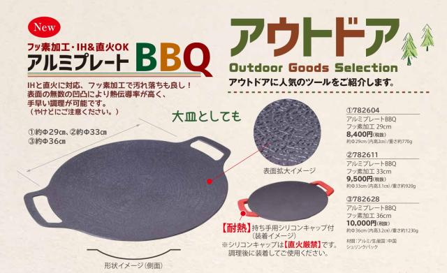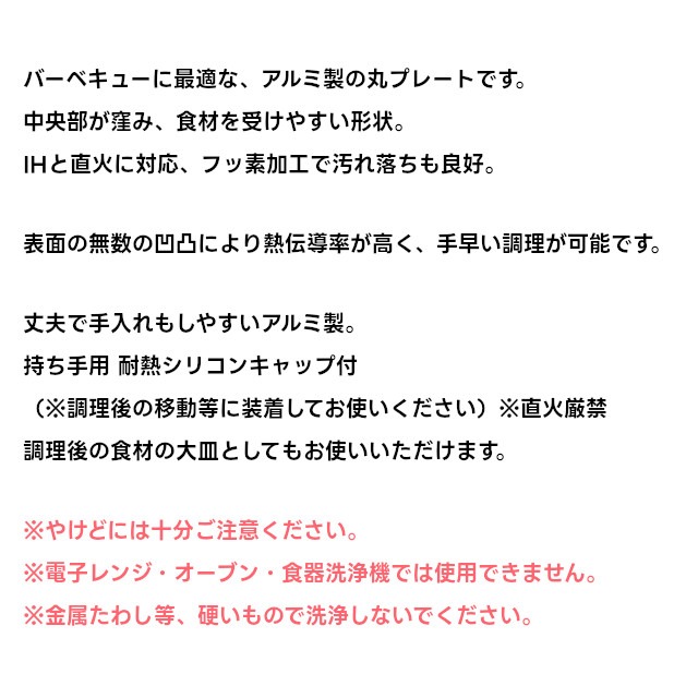 バーベキューに最適な、アルミ製の丸プレートです。 |