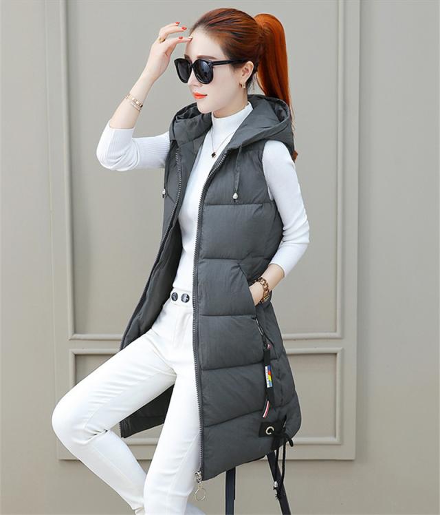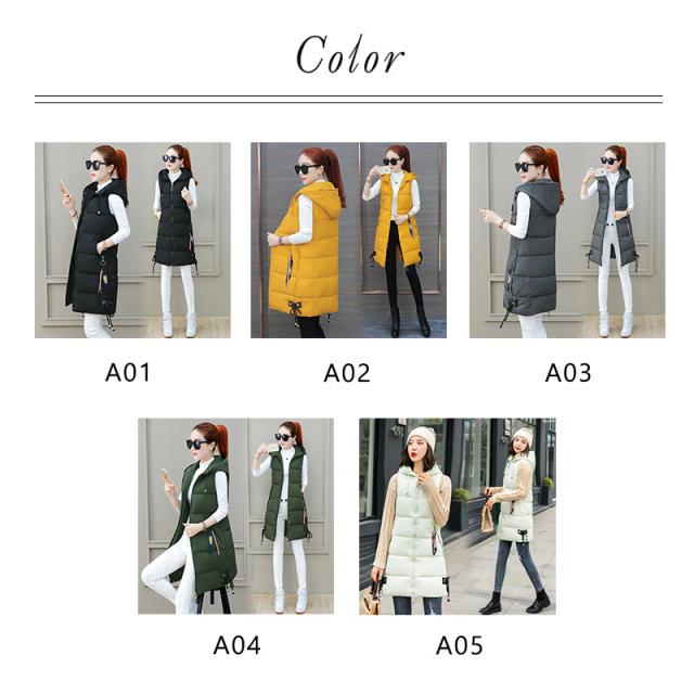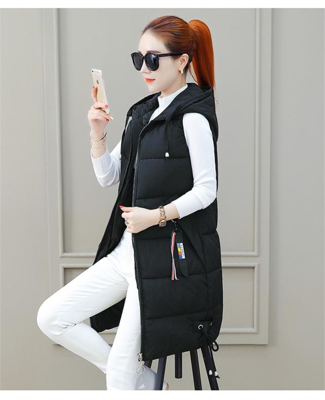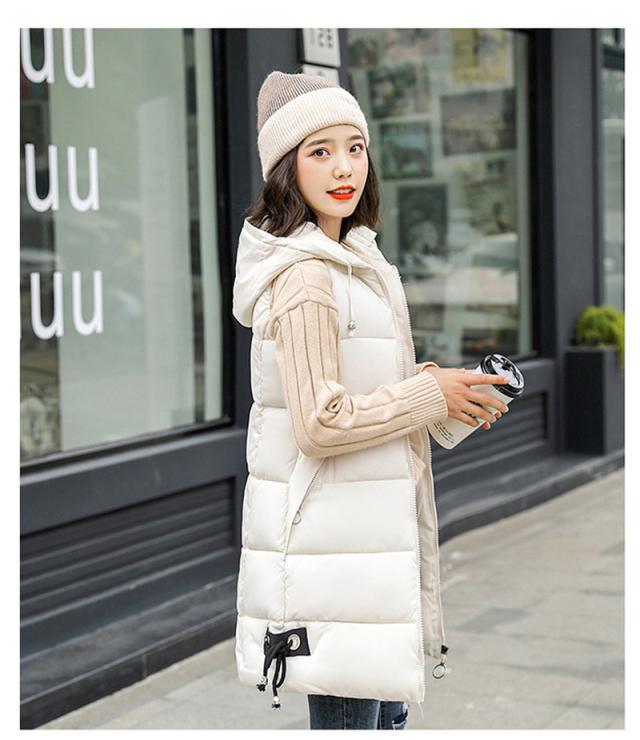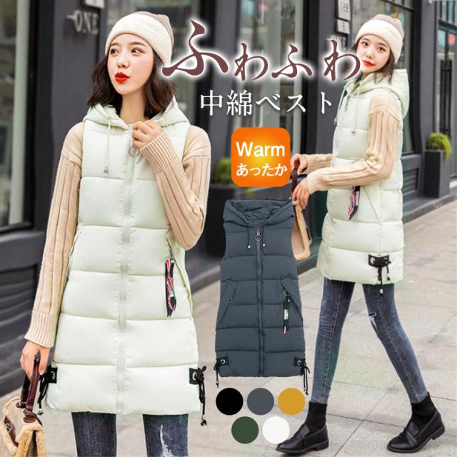 ダウンベスト レディース 中綿ベスト フード付き ロング丈 軽量 ジャケット アウター 前開き 秋冬 防寒 保温 暖かい 通勤 通