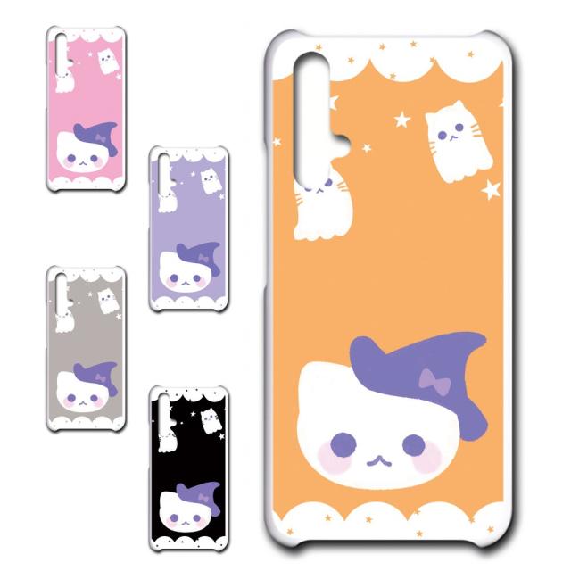 Huawei nova5T ケース かわいい ハロウィン ネコ お化け おしゃれ Halloween ハロウィーン プリントケース ハードケース 猫 ねこ ゴースト ゆめかわ ファーウェイ ノバ5t ノヴァ5t のば5t nova5tケース