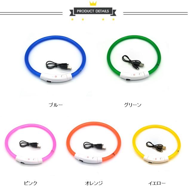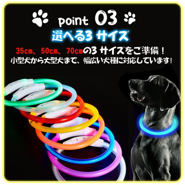 犬用首輪 光る LEDライト 夜 散歩 長さ調整可 常時点灯 点滅 USB充電 ペット 35cm50cm70cm 小型犬 中型犬 大型犬 安全 CE認証