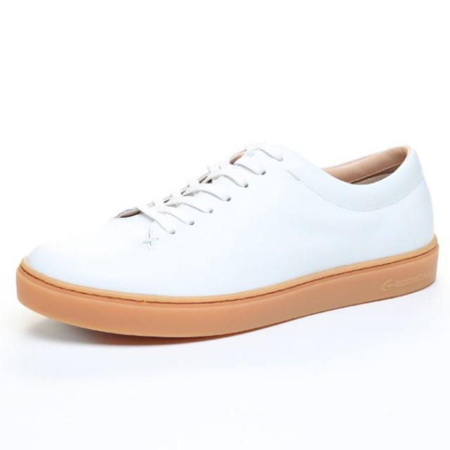 「紳士になれる靴」をコンセプトに革靴のもつ雰囲気や上品さをカジュアルシューズに落とし込んだシューズライン「gently」。30年以上の歴史がある日本初のウォーキングシューズブランドWORLD?MARCHの技術力を引き継ぎ、履く人にも“優しい”履き心地を実現。素材は本革で、紳士になれる機能を随所に搭載しています。デザインは内羽根のコートスニーカータイプ、重量は片足約440g/25.5cmです。