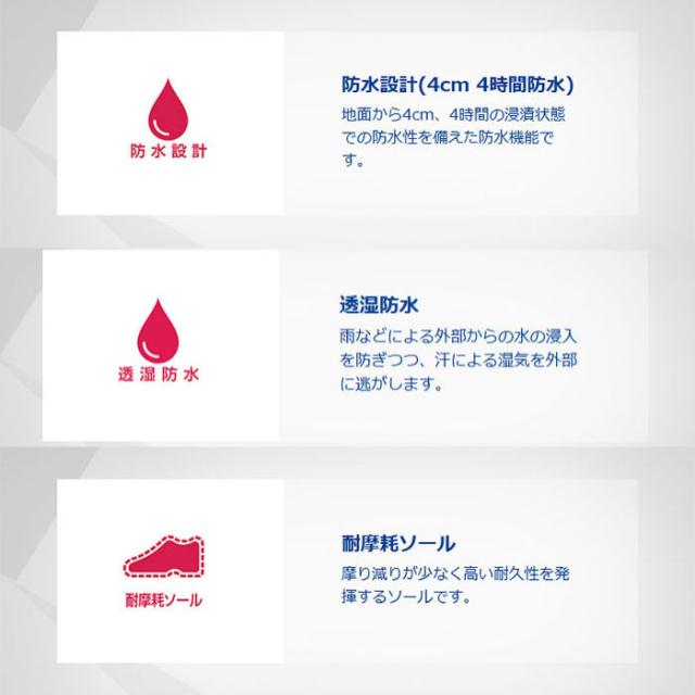 地面から4cm、4時間の浸漬状態での防水性を備えた防水機能です。