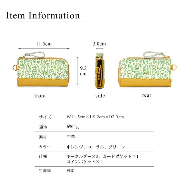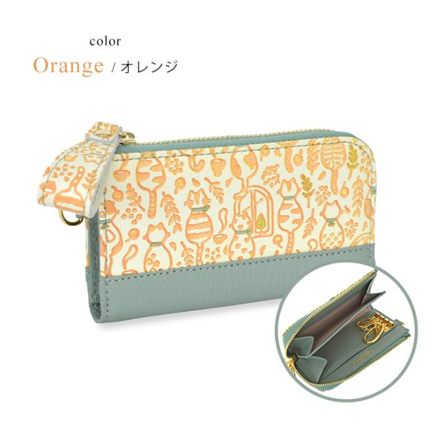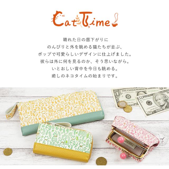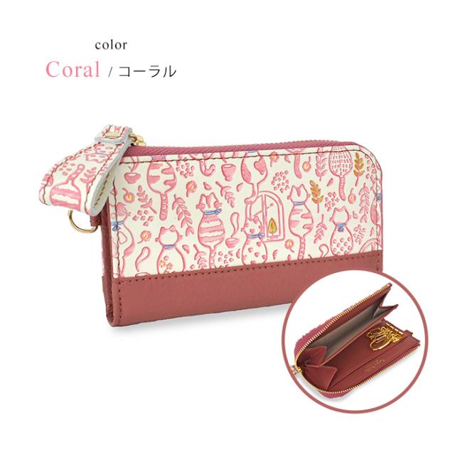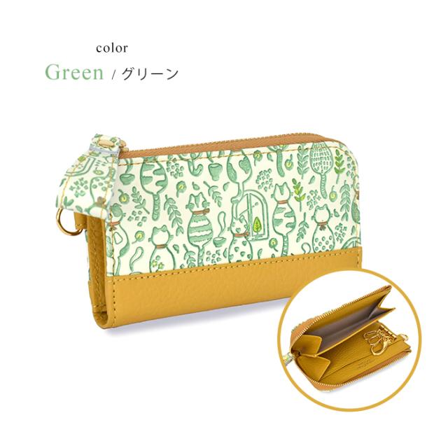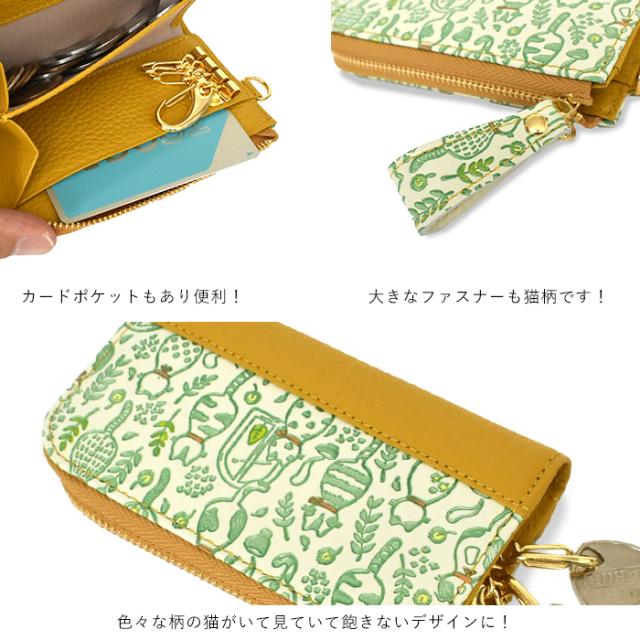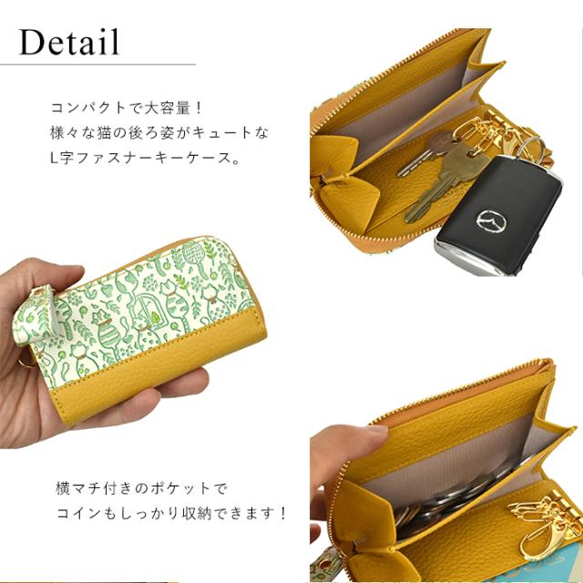 友禅文庫 L字ファスナーキーケース 小銭入れ付キーケース キーケース 鍵入れ 小銭入れ カード スマートキー CatTime キャットタイム 猫 猫柄 本革【一粒万倍日】