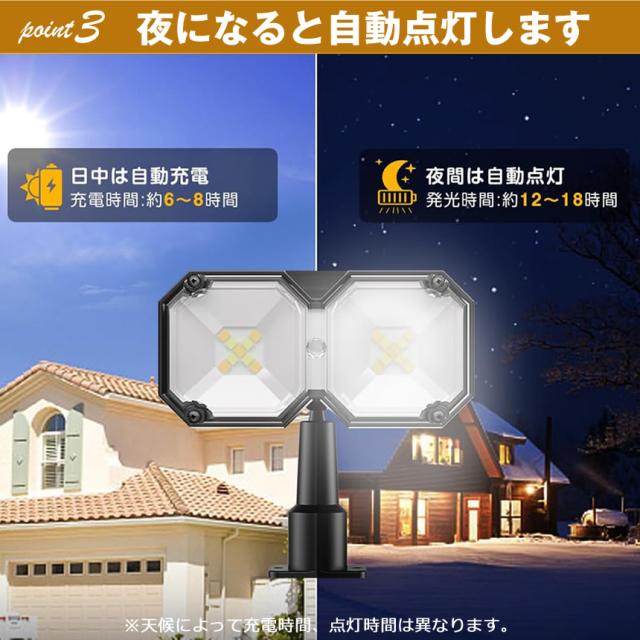 明暗センサーが搭載され、夜間になれば自動的に電源がオンになり、
