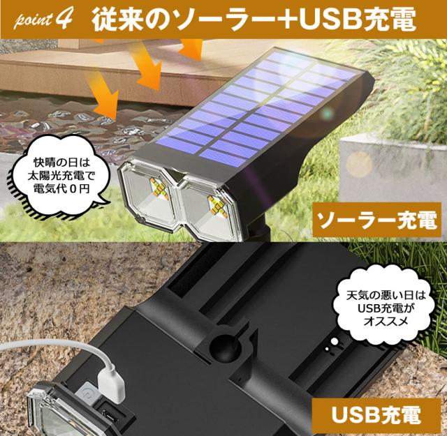 従来のソーラー充電とUSB充電どちらでも充電が可能です。