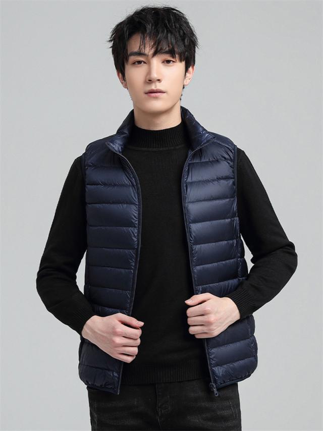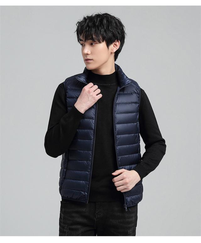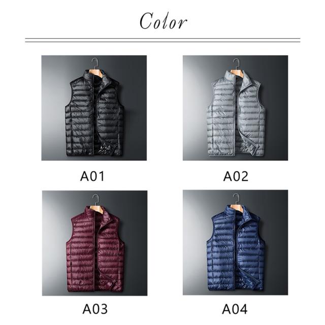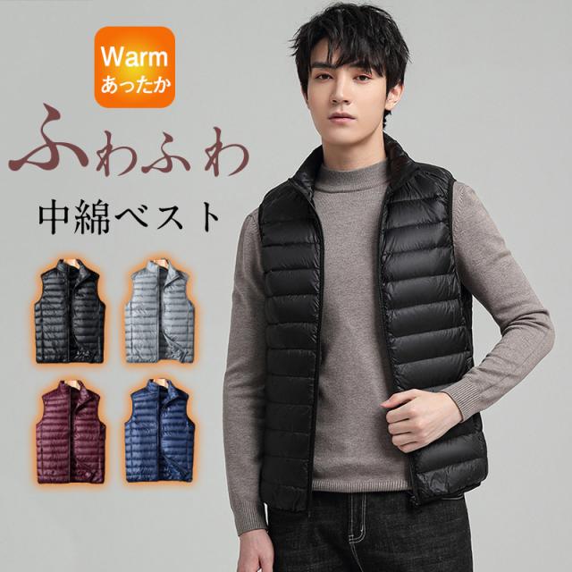 ダウンベスト 中綿ベスト メンズ ライトダウン インナーベスト 立ち襟 前開き 袖なし アウター ジップアップ 軽量 防寒 暖かい