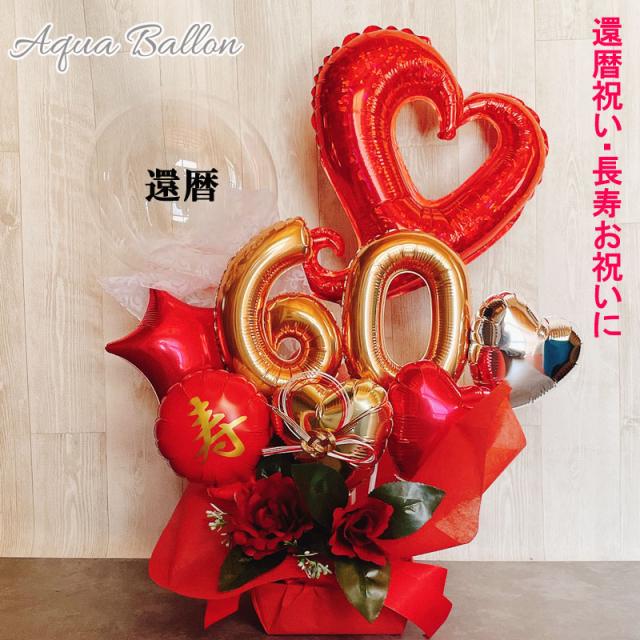 バルーンフラワー 還暦祝い バルーン バルーンギフト 還暦 誕生日 バルーンアレンジ おしゃれ 豪華 電報 赤 60歳 長寿 結婚祝い 卓上 お祝い 敬老の日 数字 プレゼント 男性 女性