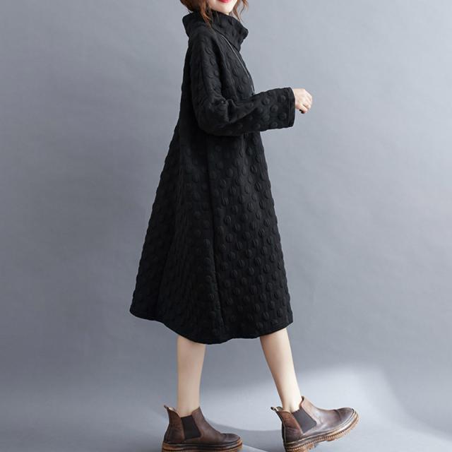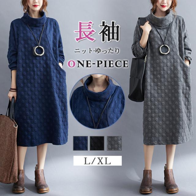ワンピース チュニック 冬 ロング レディース 40代 膝丈 長袖 厚手 ロングワンピース ハイネック 体型カバー 無地 大きいサ