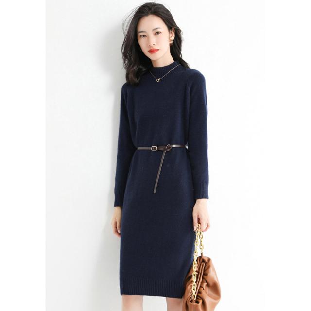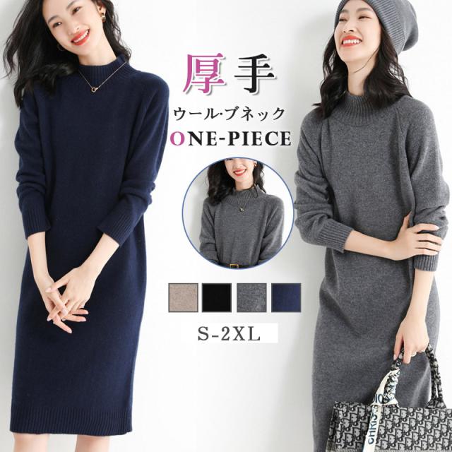 ウールニットワンピース ワンピース リブ ミディアム きれいめ 長袖 大人 ロング マキシ丈 秋冬 冬 大きいサイズ レディース