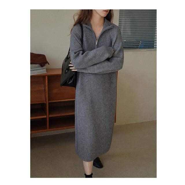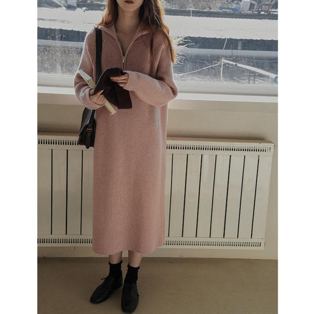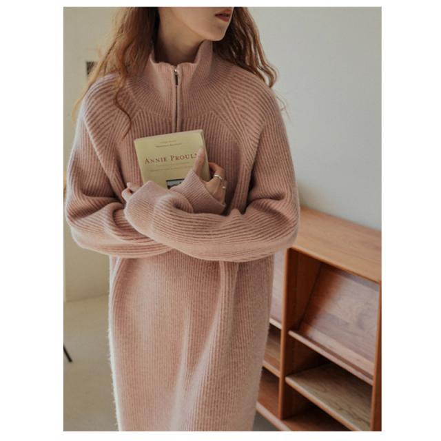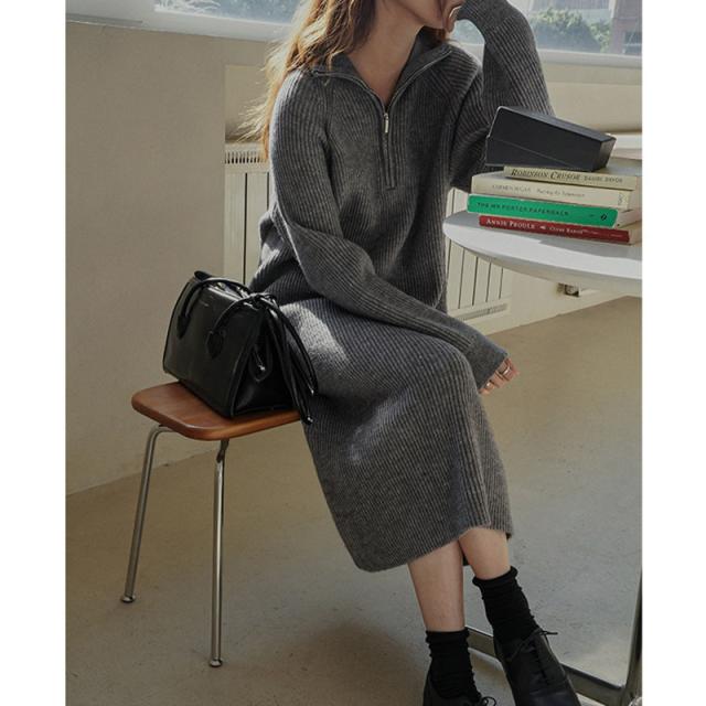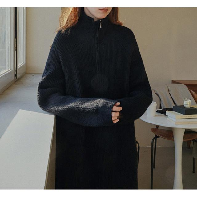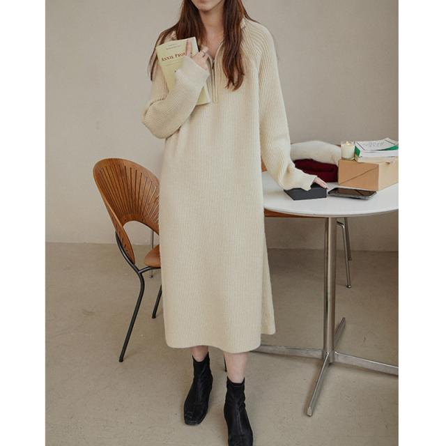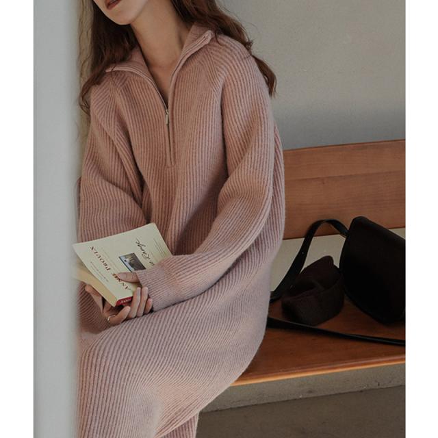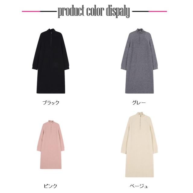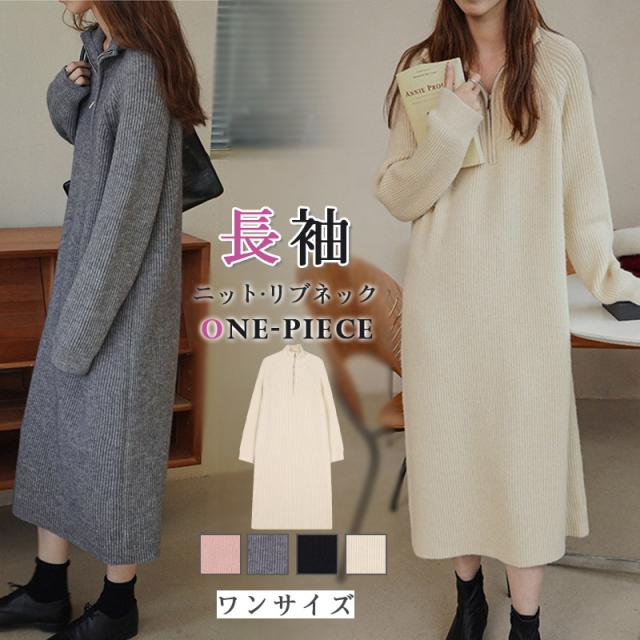 ニットワンピース ワンピース ハーフジップ リブ きれいめ 長袖 大人 ロング マキシ丈 秋冬 冬 大きいサイズ レディース ター