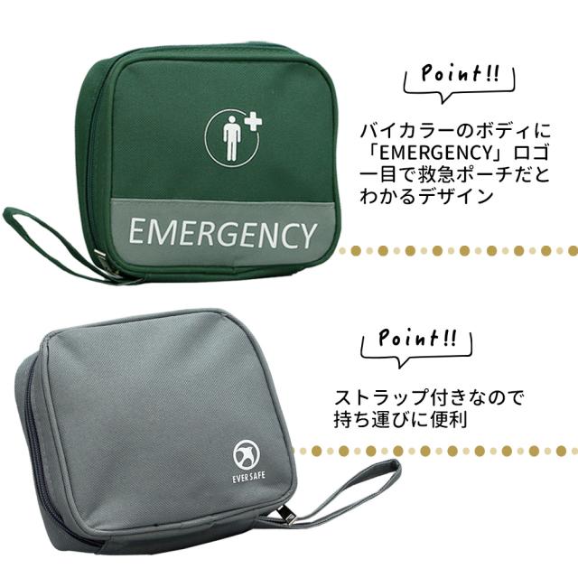 エマージェンシーポーチ Mサイズ 2個セット メディカルポーチ 【メール便1セットまでOK】 救急ポーチ 携帯用 軽量 コンパクト 防災グッズ 防災用品 緊急時 外出 薬入れ 小物入れ ファーストエイド 応急処置