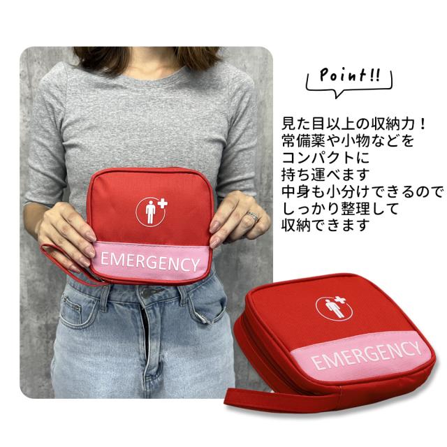 アウトドア レジャー キャンプ ピクニック トラベルポーチ 持ち運び 持ち歩き 小さめ 薄い 災害 防災用品 防災グッズ 登山 救急 整理 レッド グリーン グレー 出張 旅行 おしゃれ ストラップ 軽い プレゼント 非常時
