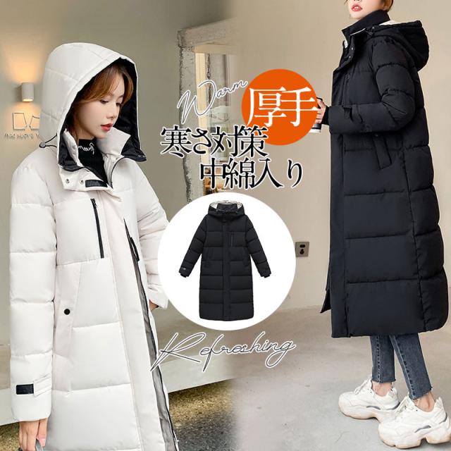 【水曜日まで!10%クーポン配布中】 中綿コート レディース 中綿入り ダウンコート ロング丈 ベンチコート フード付き ダウンジャケット アウター シンプル 厚手 あ