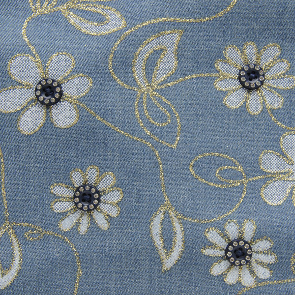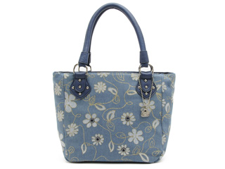 デニム地に花模様をプリントしたバッグ