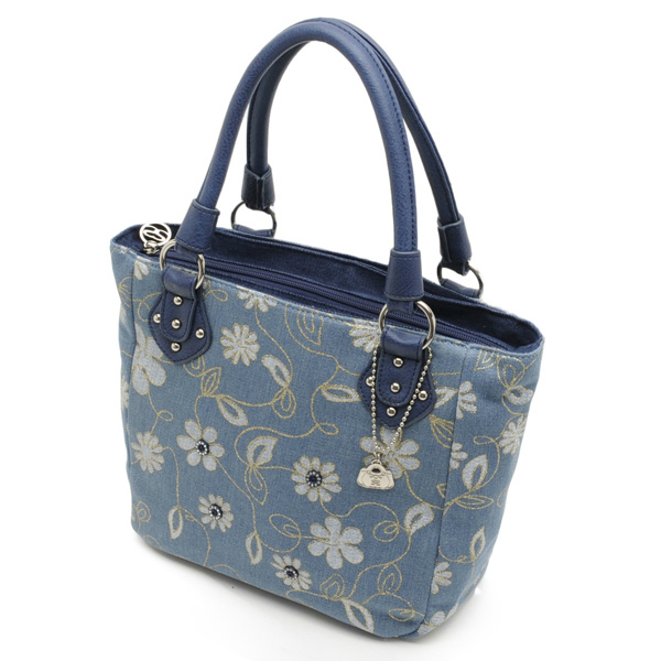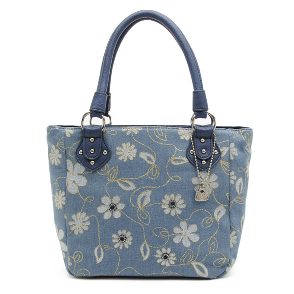 SAVOY サボイ カジュアル モダン ベーシック バッグ 鞄 カバン SM 16741202 デニム地に花模様をプリントしたバッグ■花柄プリントのラメがきらきらと華やかな印象に!■500mlのペットボトルも入る大きさです♪■
