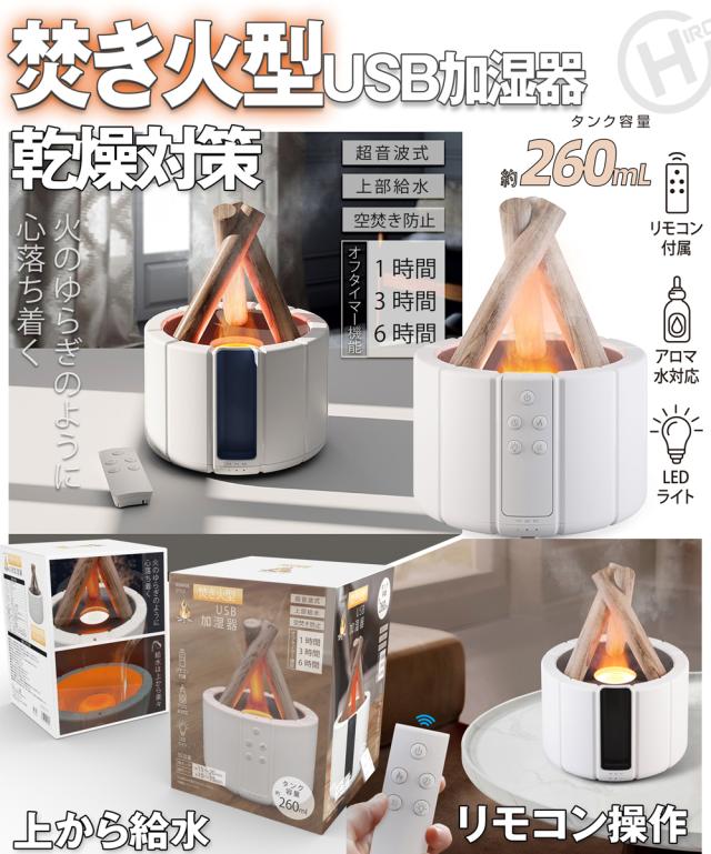 HED-2801 焚き火型USB加湿器 上部給水 超音波式 リモコン付き