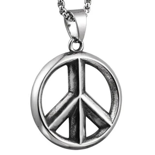 重厚感のある平和のロゴ、ピースマークをモチーフにしたサージカルステンレス316L製のペンダントトップです。リアルでかっこいいピースマークのネックレスパーツは大人から子供まで幅広い層に人気。
