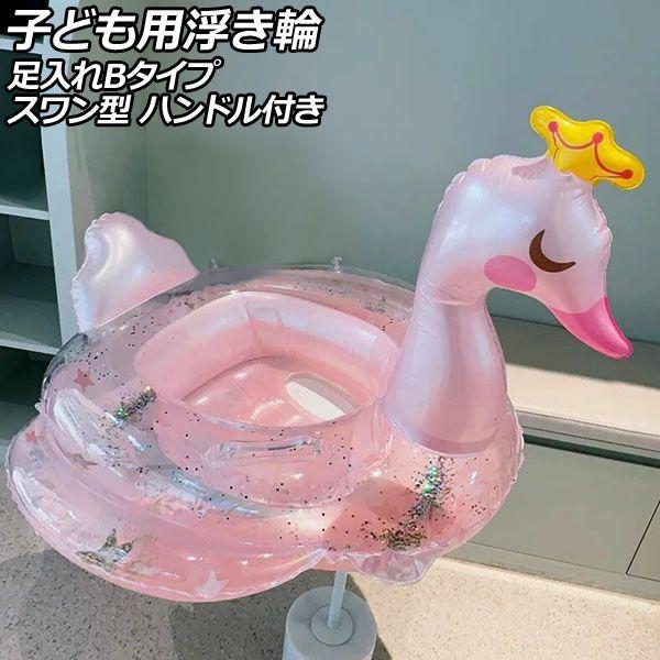 子ども用浮き輪 ピンク 足入れBタイプ PVC製 スワン型 ハンドル付き AP-UJ0942-B