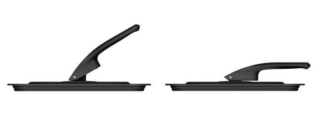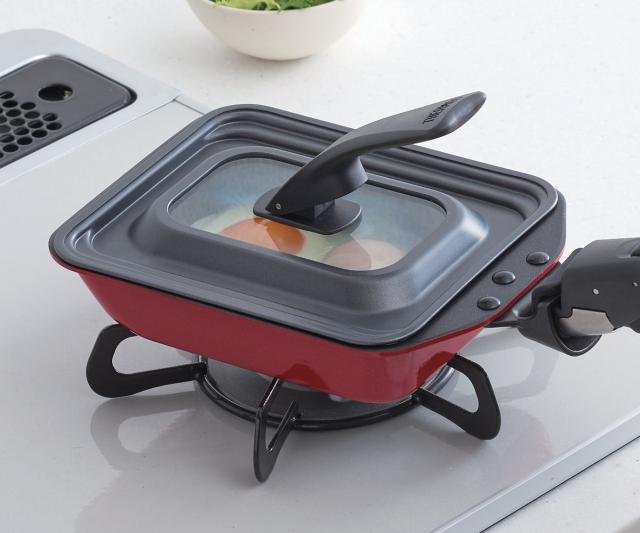 ハンドルが折りたためる、スタンド式の玉子焼き器用フタ