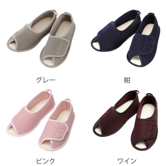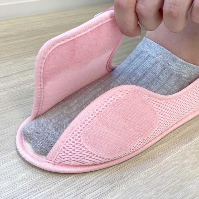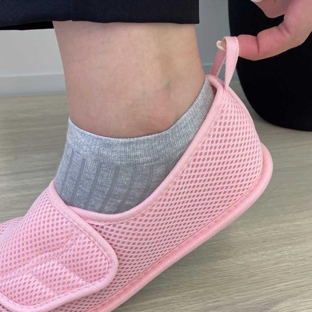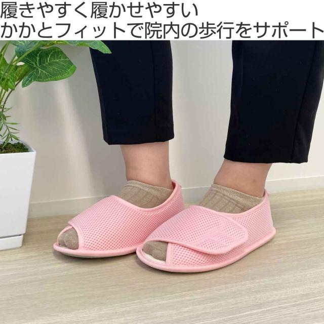 病院内で安心・安全・快適に過ごせる入院用のシューズです。甲が全開するマジックタイプで履きやすく、介助者にとっても履かせやすいです。足の状態に合わせて調整が可能なため、外反母趾やむくみ・腫れの症状がある方、また甲高や幅広の方にもおすすめです。