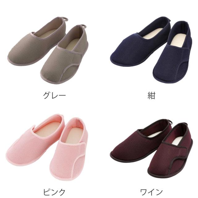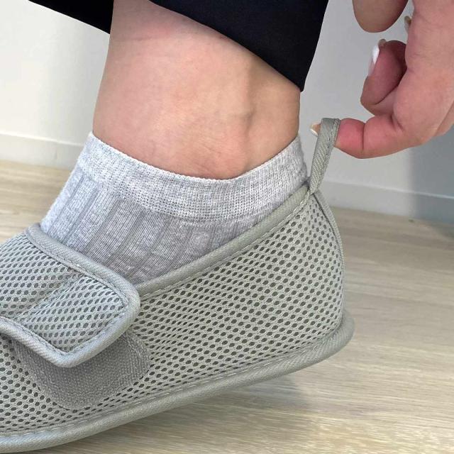 病院内で安心・安全・快適に過ごせる入院用のシューズです。大きく開くマジックタイプで履きやすく、介助者にとっても履かせやすいです。履き口も広めで足入れもスムーズにできます。