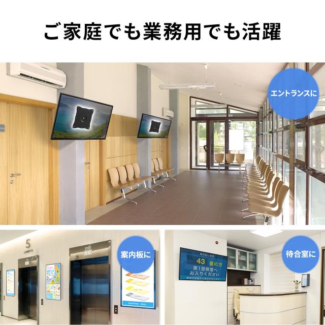 ●モニターを360度回転させることができ、上下調整も可能です。●あらかじめ壁面へ固定したブラケットに差し込むだけの簡単取り付けです。