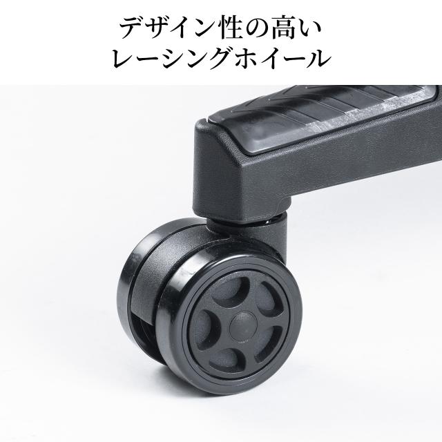 ●レーシングホイールをイメージした、直径6cmの大型ウレタンキャスターを装備しています。