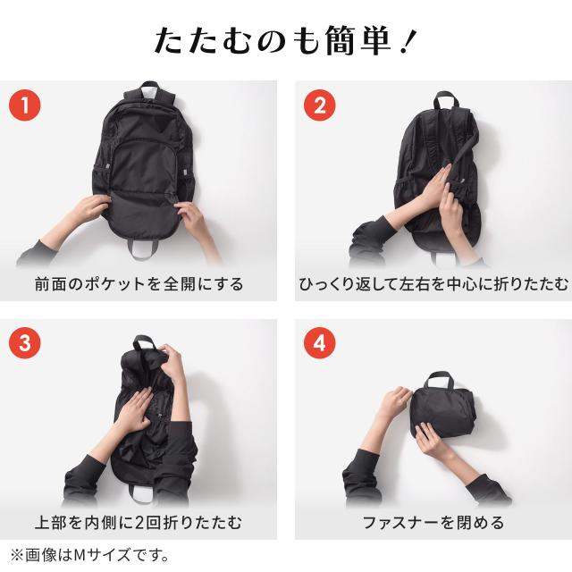 ●折りたたむことができるリュックサックです。●パッと広げてリュックとして使い、不要時はコンパクトにたためるのでサブバッグとして持ち運びに便利です。