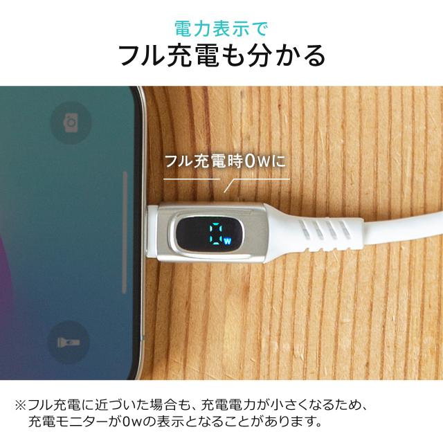 ⇒ご購入の前にご確認下さいPD電力表示機能が付いたUSB Type-Cケーブル。PD100W対応なので充電ケーブルや電源ケーブルに最適。シリコンケーブルを採用し、しなやかでコンパクトにまとまります。1m。ホワイト。【WEB限定商品】