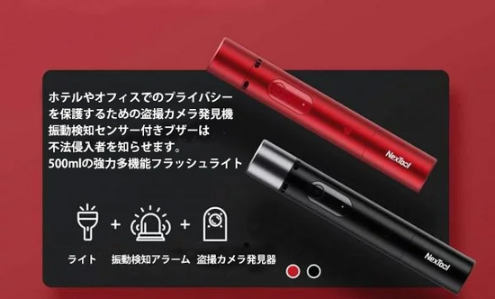 ■機能:フラッシュライト、盗撮カメラ発見器、振動センサー付きアラーム
