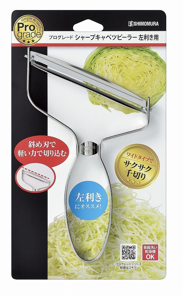 プログレード シャープキャベツピーラー 左利き用 PG-644 Pro grade ぷろぐれーど 下村工業 皮むき器 スライサー スライス 千切り ワイド 半玉 食洗機対応 食洗器対応 オールステンレス 左きき 利き手