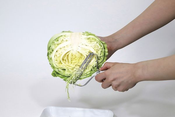 ワイドな斜め刃でラクに千切りキャベツができます