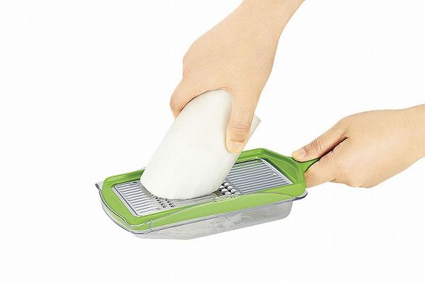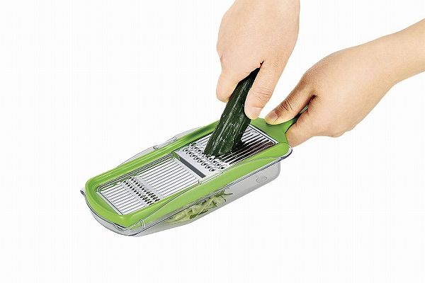 両面を使い分けて、手軽にきゅうりや大根の千切りやツマ切りができます
