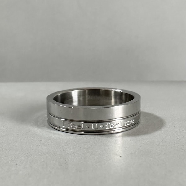 大切な人との繋がりを意味する英文メッセージが刻まれたシンプルなデザインリング。