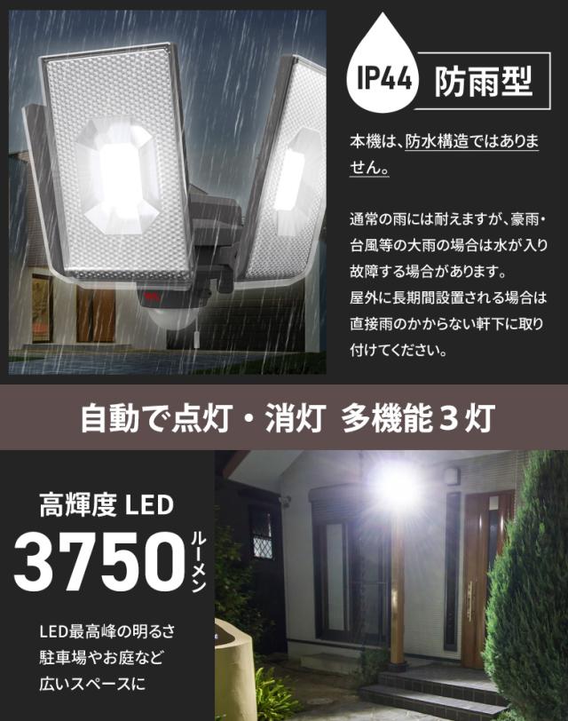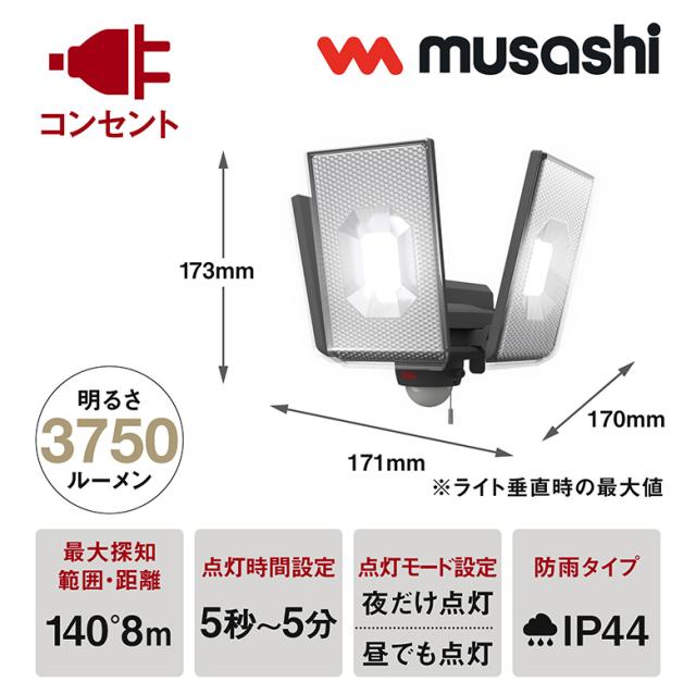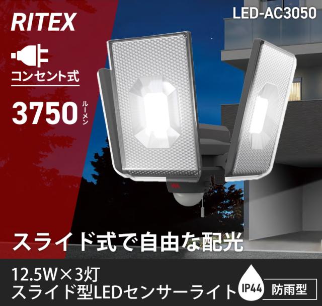 【50%引き】 人感センサーライト 屋外 防犯ライト ムサシ RITEX 12.5W×3灯 スライド型LEDセンサーライト(LED-AC3050) コンセント式 AC 玄関 ガレージ 照明 LED