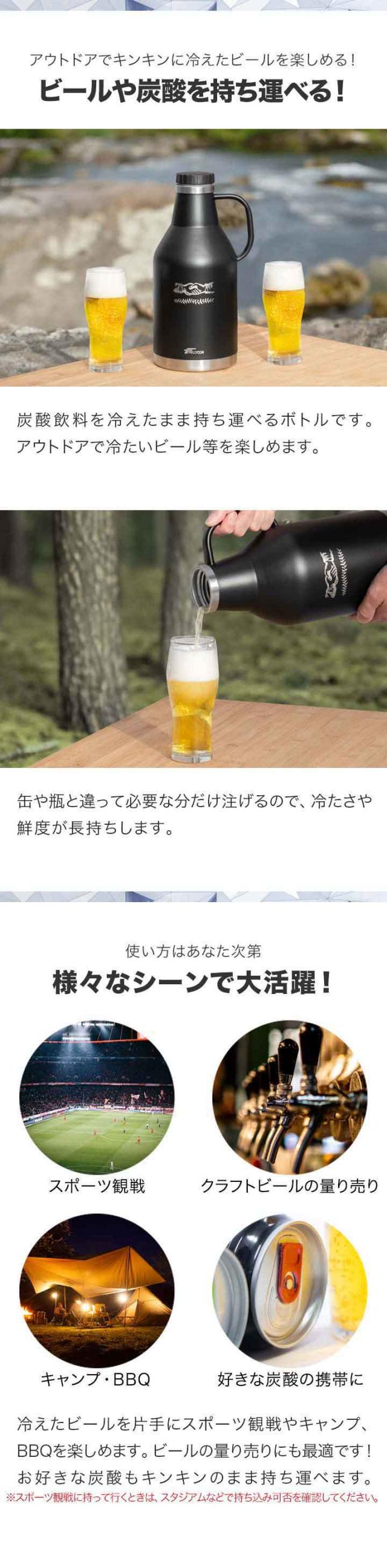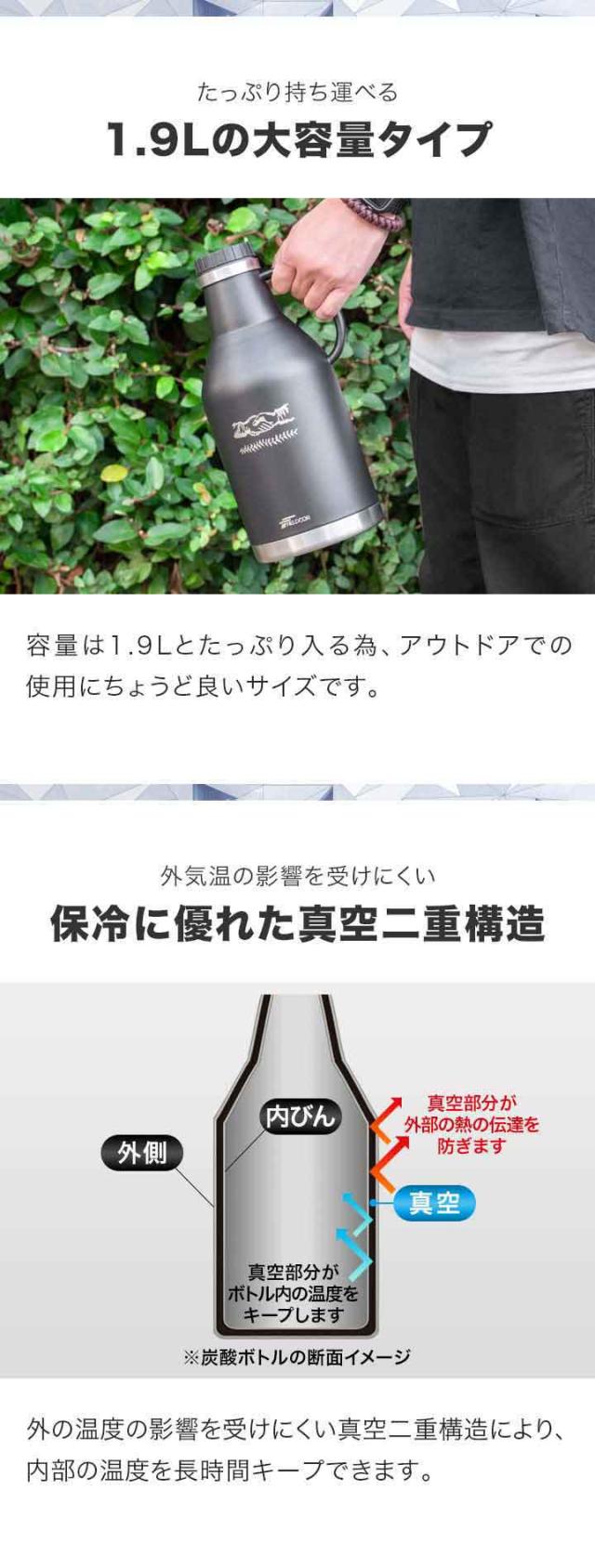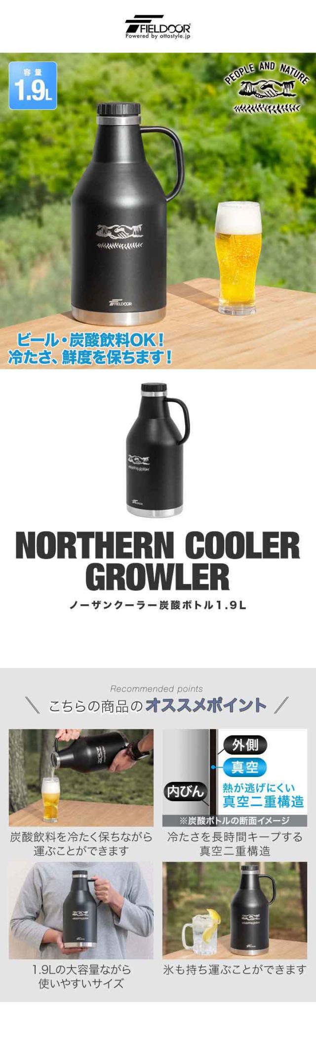 FIELDOOR 炭酸水 持ち歩き ボトル 1.9L 大容量 炭酸ボトル 真空断熱 水筒 炭酸対応 アウトドア 保冷 保温 ステンレス ビール お酒 氷入れ 持ち運び タンブラー スポーツジャグ マグボトル ノーザンクーラー炭酸ボトル 1年保証 送料無料