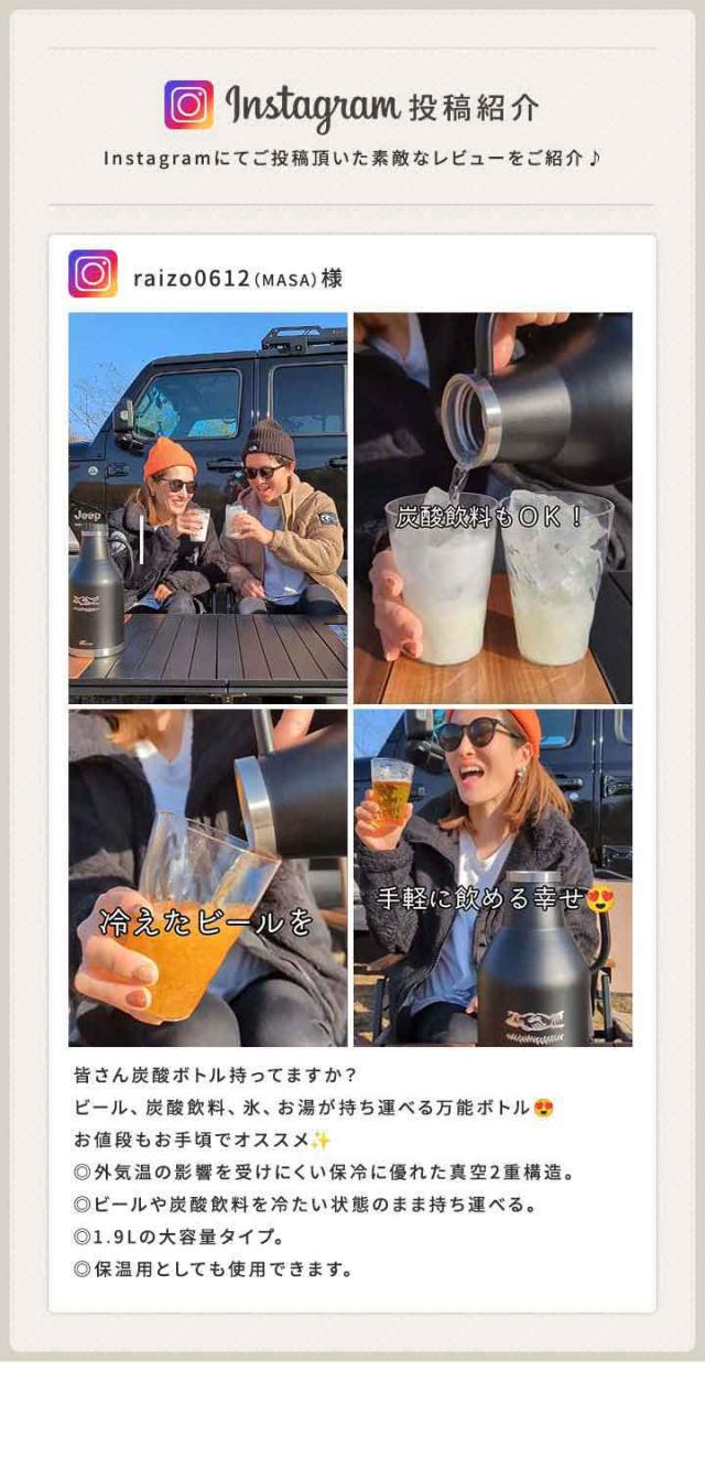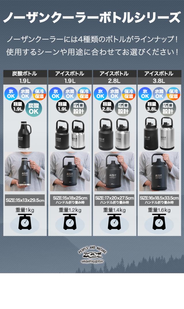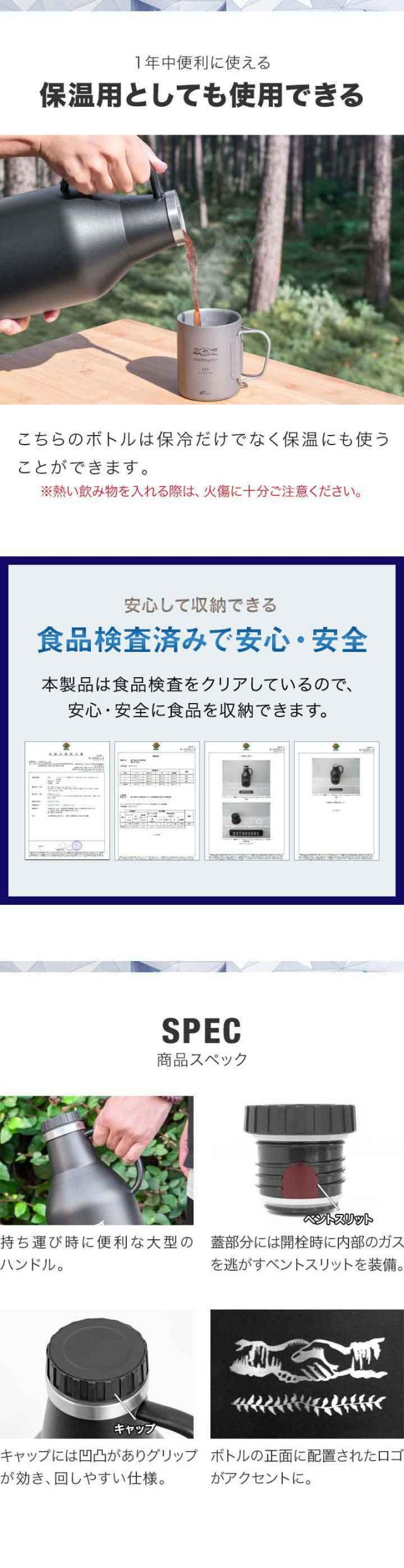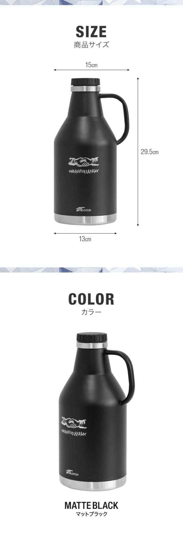 FIELDOOR 炭酸水 持ち歩き ボトル 1.9L 大容量 炭酸ボトル 真空断熱 水筒 炭酸対応 アウトドア 保冷 保温 ステンレス ビール お酒 氷入れ 持ち運び タンブラー スポーツジャグ マグボトル ノーザンクーラー炭酸ボトル 1年保証 送料無料