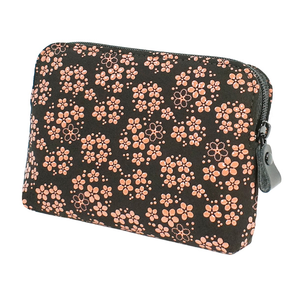 印伝 甲州印伝 印傳屋 上原勇七 小物ポーチ 化粧ポーチ 4409 忘れな草 黒地×ピンク漆 鹿革 本革 レザー 花柄 ブランド 冬ギフト バレンタイン 贈り物 YM01