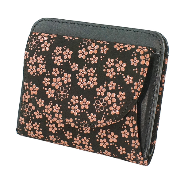 印伝 甲州印伝 印傳屋 上原勇七 財布 二つ折り財布 2219 忘れな草 黒地×ピンク漆 鹿革 本革 レザー 花柄 ブランド 冬ギフト バレンタイン 贈り物 YM02