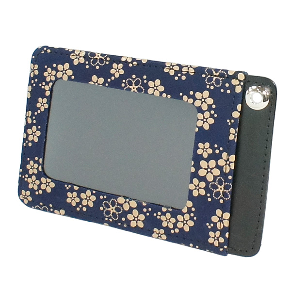 印伝 甲州印伝 印傳屋 上原勇七 パスケース 定期入れ 2525 忘れな草 紺地×白漆 鹿革 本革 レザー 花柄 ブランド 冬ギフト バレンタイン 贈り物 YM02
